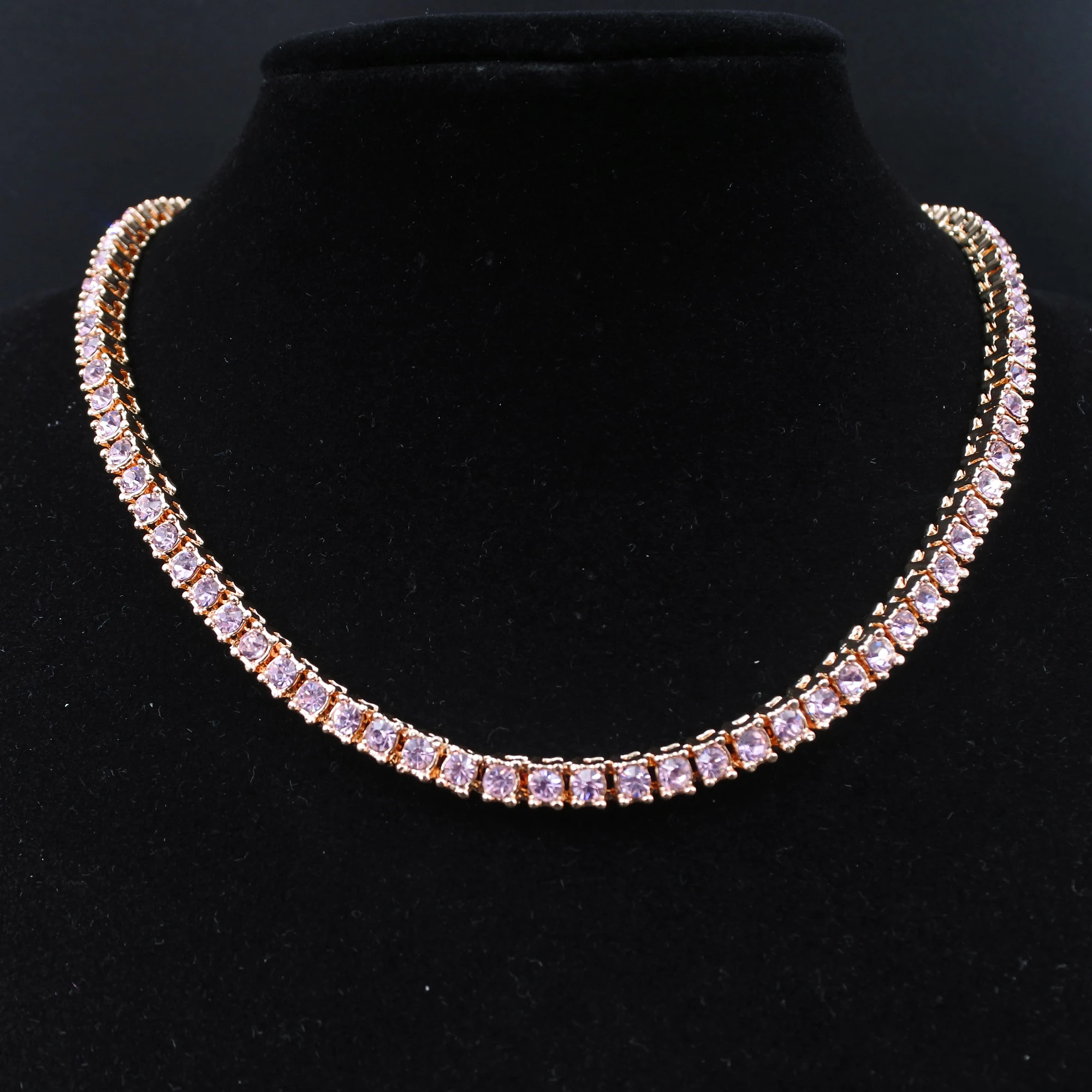 Розовое золото, розовый кристалл, 1 ряд, цепочка для тенниса, хип-хоп, женское ожерелье, мужское панк, рэпер, певец, iced out, bling cz, модные ювелирные изделия