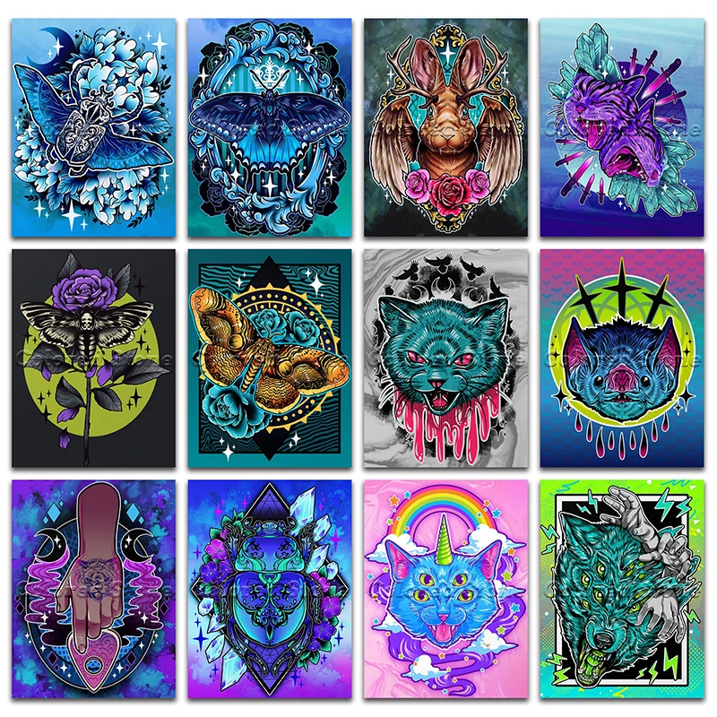 Живопись полностью Квадратный бриллиант, 5D, вышивка крестиком, животные, красочная бабочка, кролик, кошка, роза, летучая мышь, волк, дрель, мозаика 038
