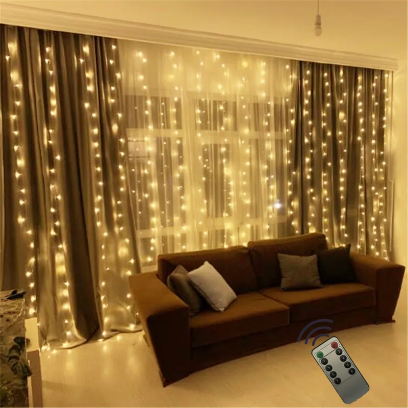 СВЕТОДИОДНАЯ Гирлянда-занавеска с дистанционным управлением, 6x2,5 м, светодиодов