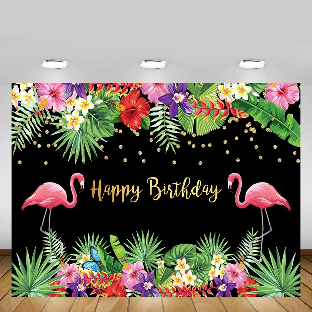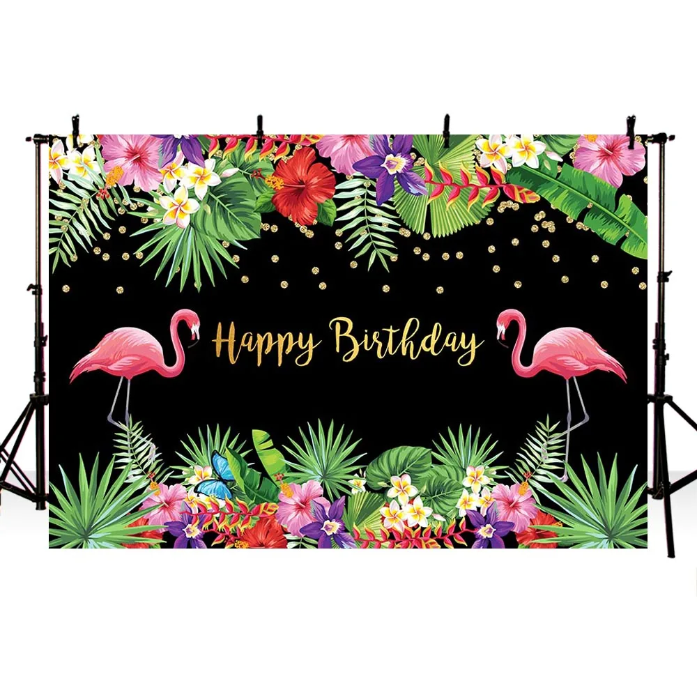 Фотофон Mehofond с изображением розовых фламинго для детей и взрослых, баннер для дня рождения, цветок, Золотой горошек, черный фон для фотозоны