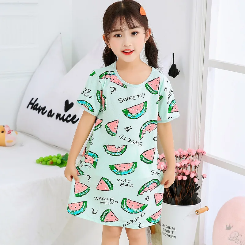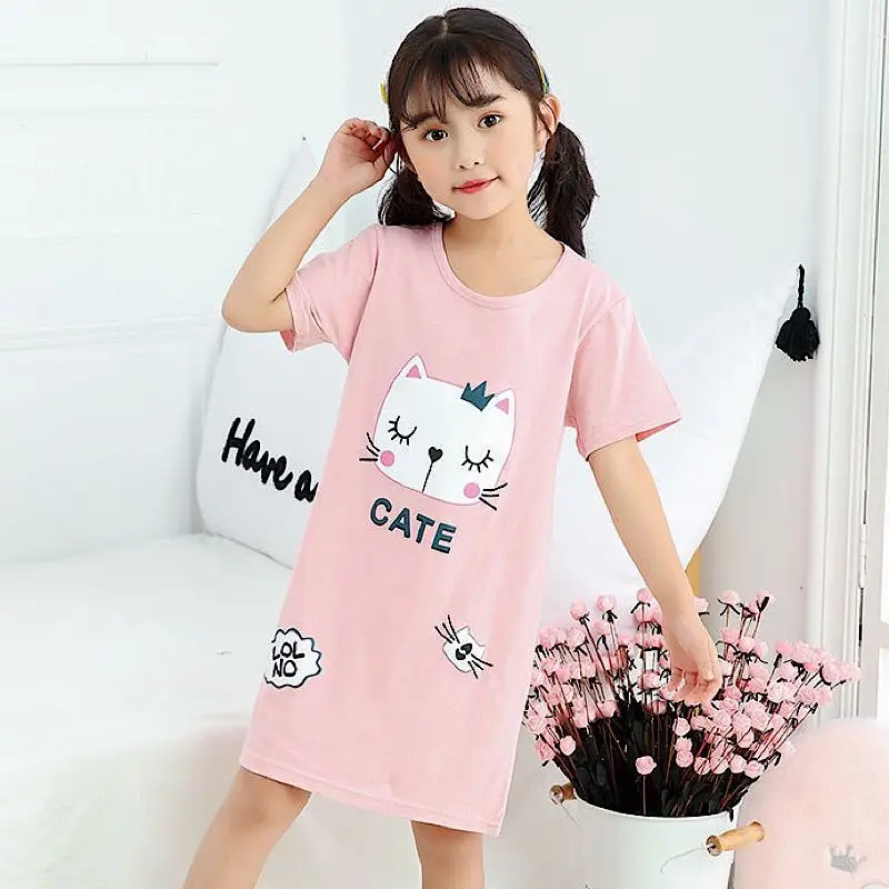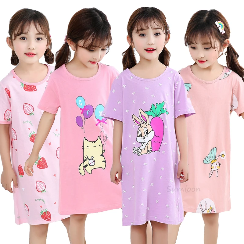 Летняя ночная рубашка для девочек, детские пижамы, хлопковые ночные...