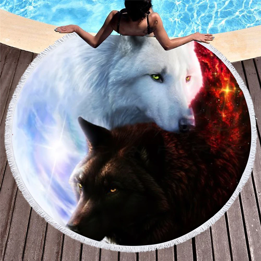 Круглое пляжное полотенце с принтом волка для взрослых, сжатое поло...