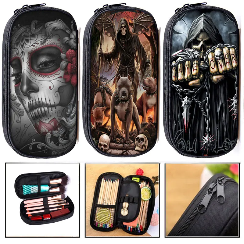 Классная Сумка-карандаш с черепом смерти для детей, держатель-карандаш для мальчиков Azrael Grim Reaper, пенал для школы, чехлы-карандаши для женщин, косметички