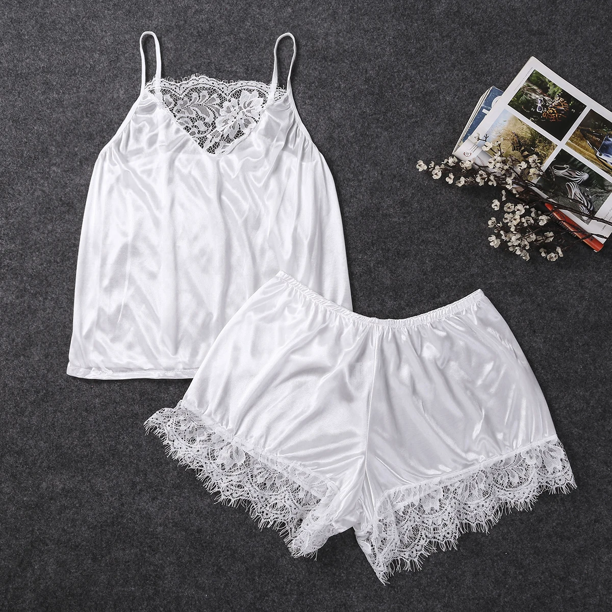 2022 женская пижама, атласный сексуальный кружевной пижамный комплект, женский элегантный топ без рукавов и шорты, Ночной костюм, комплект нижнего белья Pj