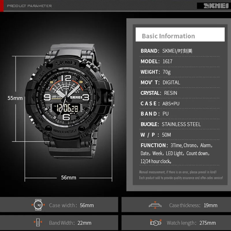 Часы мужские, противоударные, с большим циферблатом, цифровые, водонепроницаемые, спортивные, 1617 SKMEI
