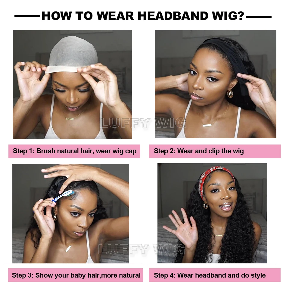 Afro курчавый кудрявый парик с головной повязкой из натуральных волос, короткая стрижка, бразильский Волосы Remy полный фабричного производства парики из натуральных волос с Африканской структурой, нет клея гель Luffywig