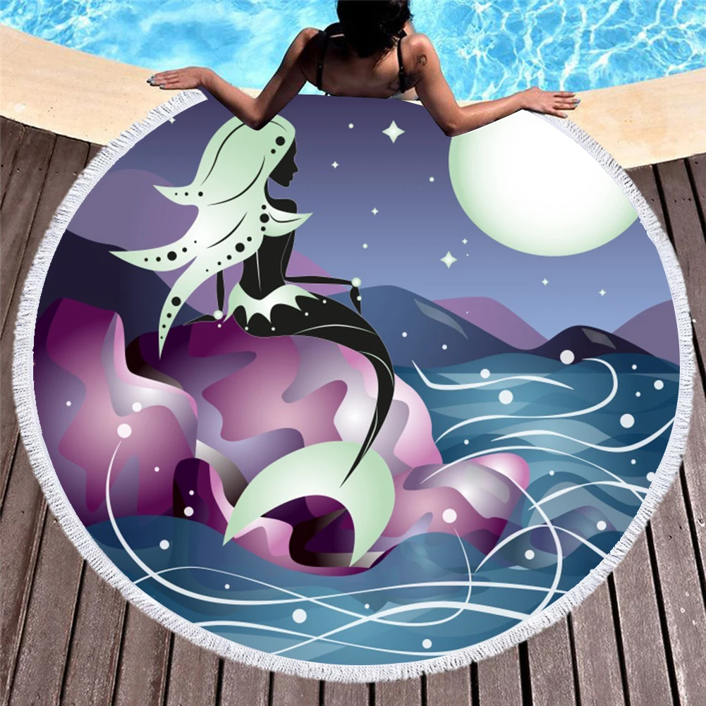 Полотенце из микрофибры с мультяшной русалочкой, большие круглые пл...