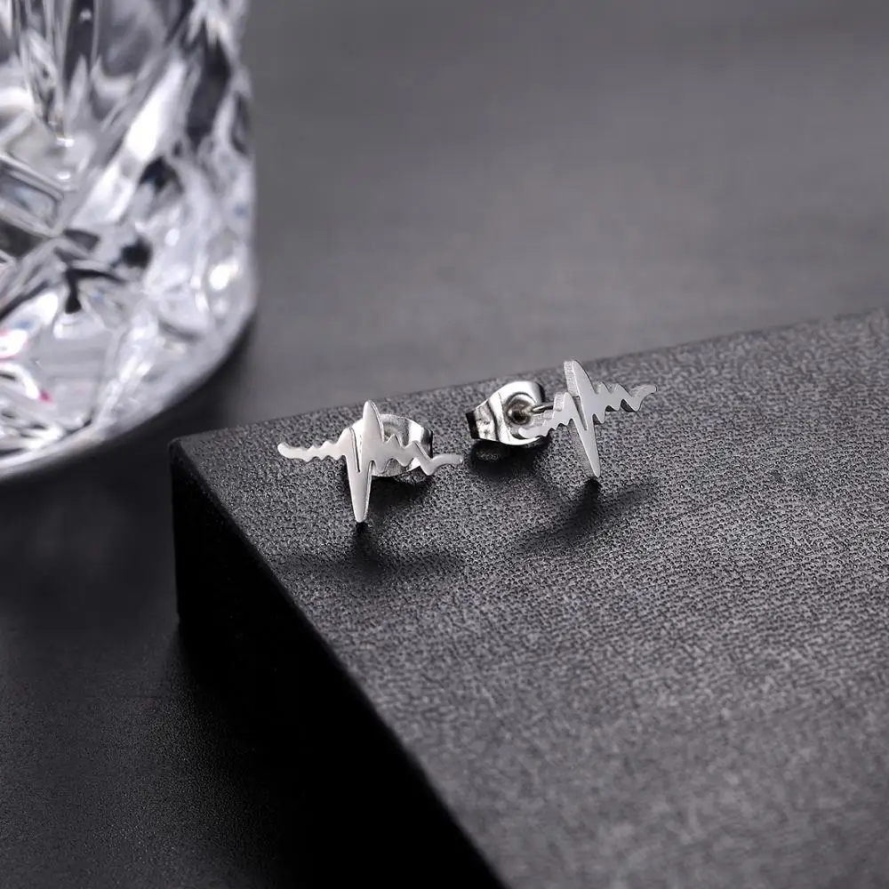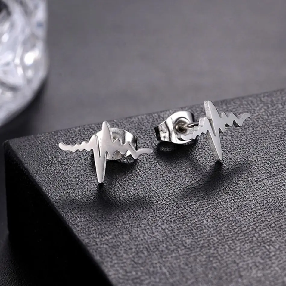 FGifter ювелирные изделия Сладкая девушка ЭКГ серьги гвоздики из нержавеющей стали пирсинг кольцо модный тренд женские ювелирные изделия оптом