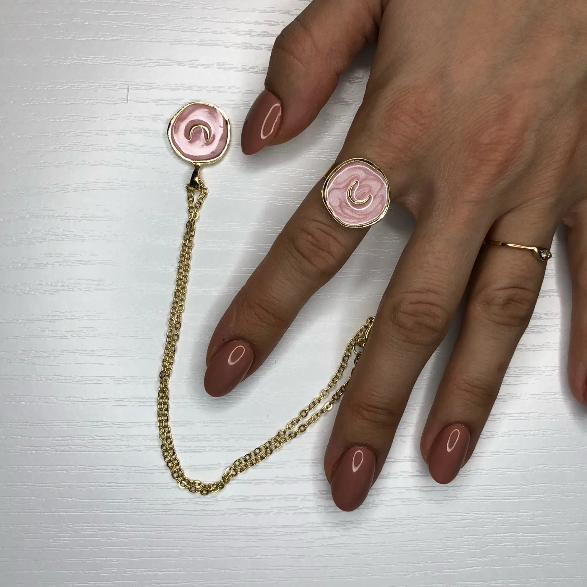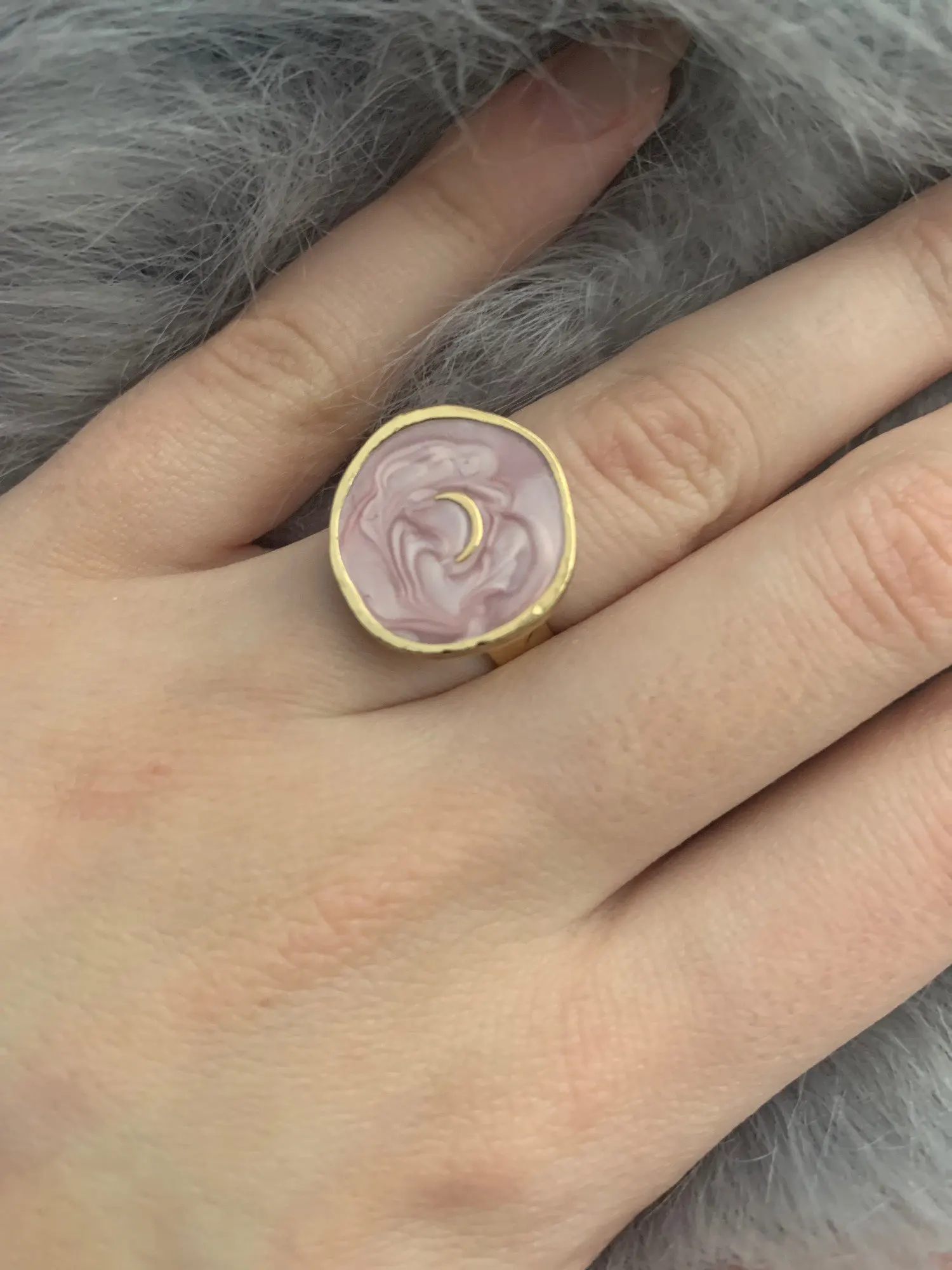 Хорошее колечко очень красивое, регулируется. Цвет розовый очень нежный с блёстками. Нигде ничего не цепляется, одним словом все СУПЕРГХ
