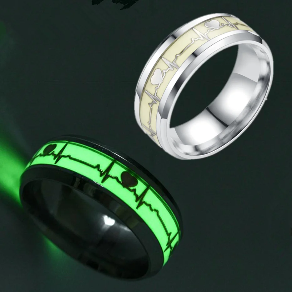 Кольцо в стиле панк для мужчин и женщин, блестящее украшение с изображением пульса в темноте, из нержавеющей стали, в стиле хип-хоп, свадебная бижутерия, хороший подарок для пары