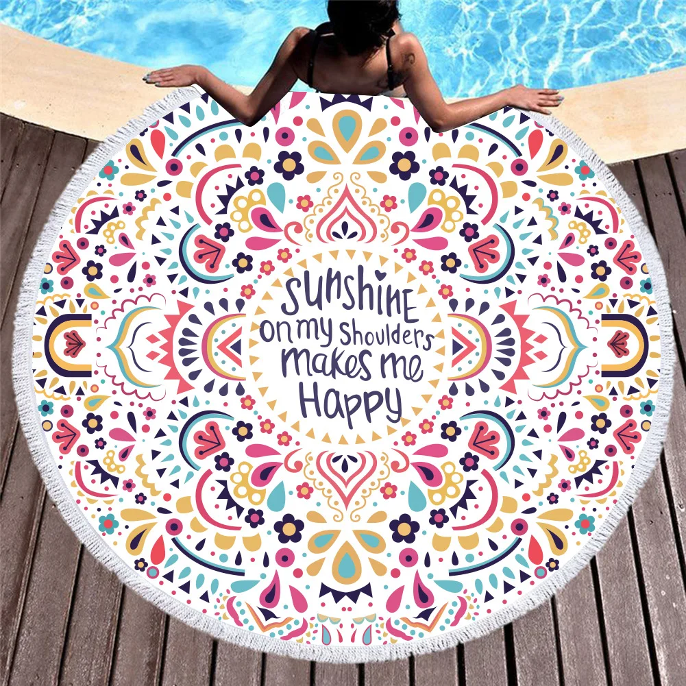 С принтом You Are My Sunshine с красочным узором 3D пляжное полотенце из микрофибры, 150 см большое круглое пляжное Полотенца для взрослых и детей с кисточкой B604