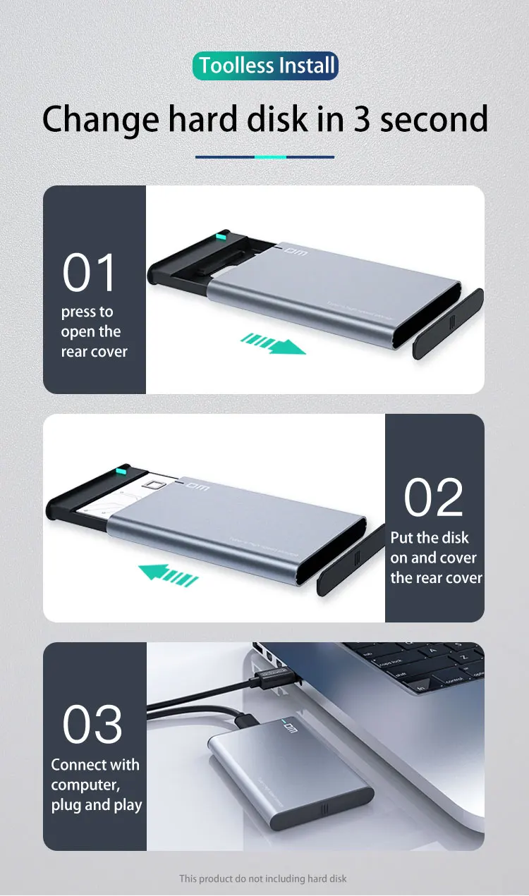Чехол для внешнего жесткого диска DM, 2,5 дюйма, SATA на USB 3,1 Gen 2