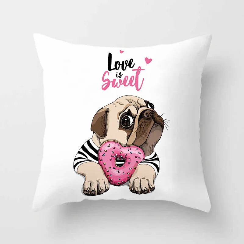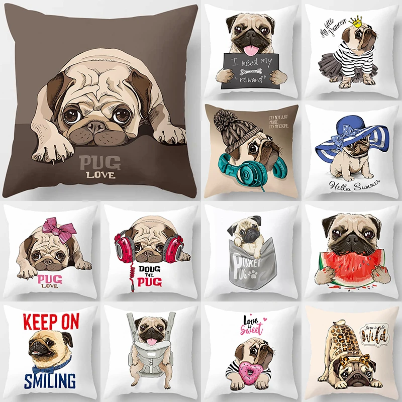 Мультяшный Мопс бульдог декоративная подушка для дивана наволочка П...
