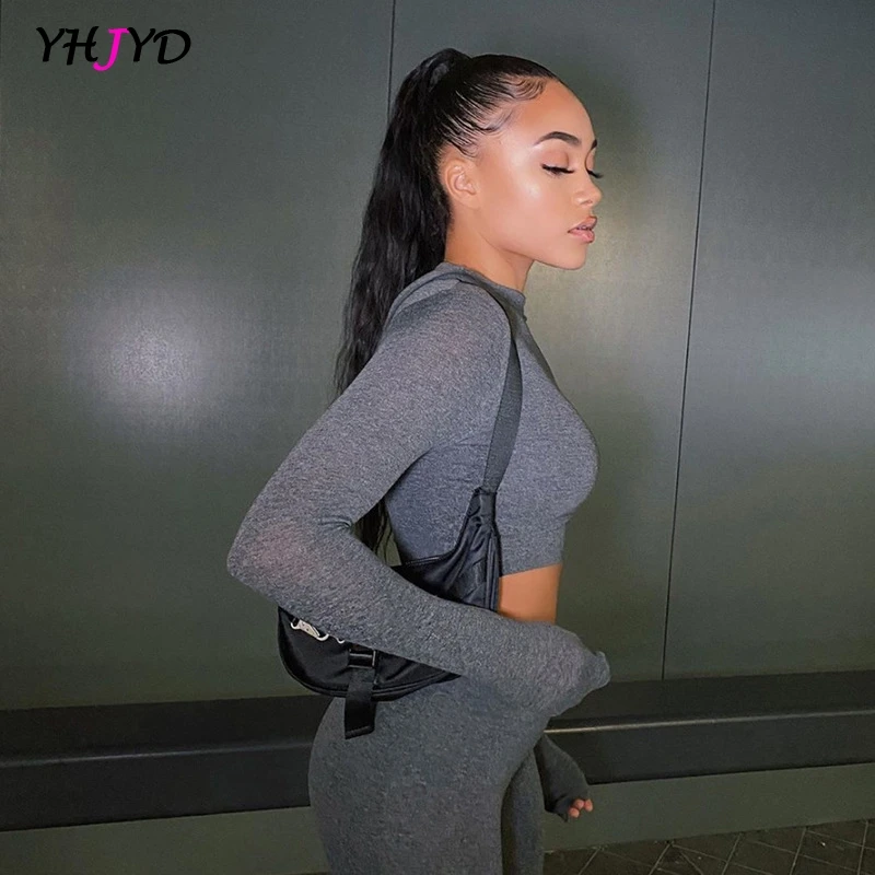 Женский спортивный костюм из топа с длинным рукавом и брюк с высокой талией