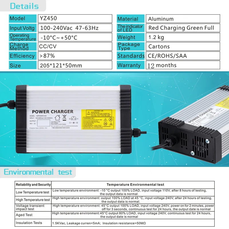 ● Параметры выхода: 42 в 10 А ● Тип рабочего аккумулятора: 10S 36V литиевая батарея ● Стабильный MTBF: >30000H ● Эффективность: >85% ● Малый размер: 205*121*50 мм ● Светильник Вес: 1,2 кг ● Материал: металлический алюминиевый чехол ● Послепродажное обслуживание: гарантия 12 месяцев ● Светильник, небольшой, стабильный, высокоэффективный, безопасный и т. Д. Точный предел напряжения и тока, квалифицированный полностью заряженный и избегайте перезарядки