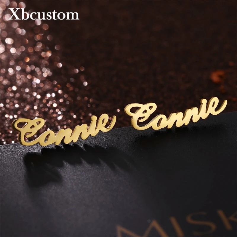 Серьги с именем на заказ, персонализированные серьги из нержавеющей...