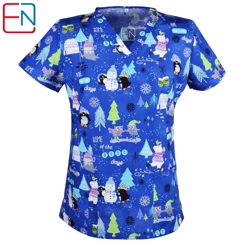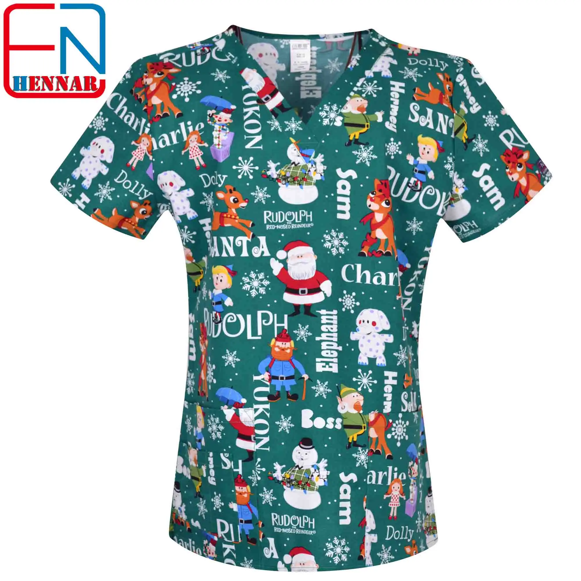 Рождественские топы-скрабы для женщин, Униформа, скраб-топ, Униформа, 100% хлопок, с мультяшным принтом, одежда для кормящих XXS-5XL