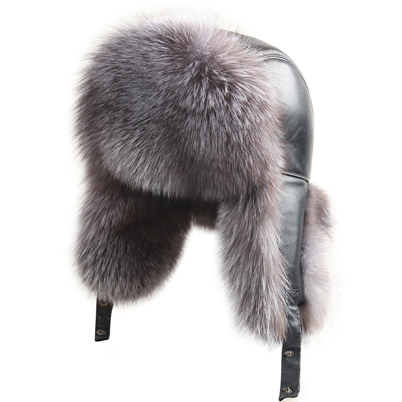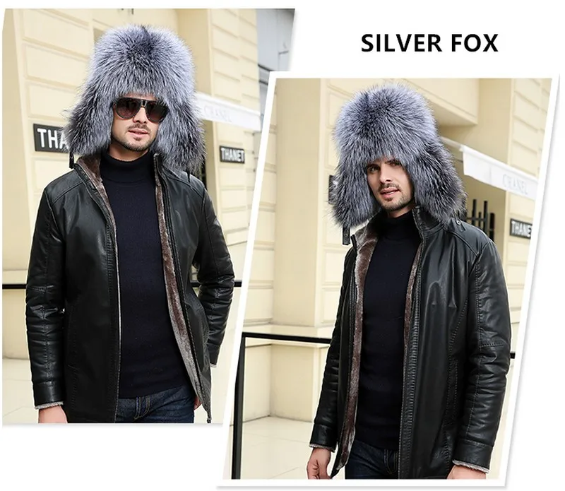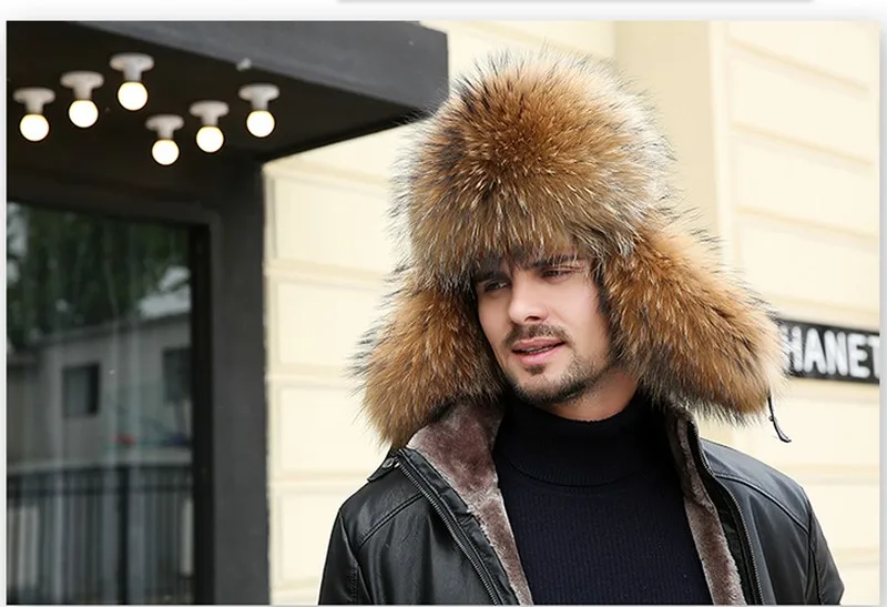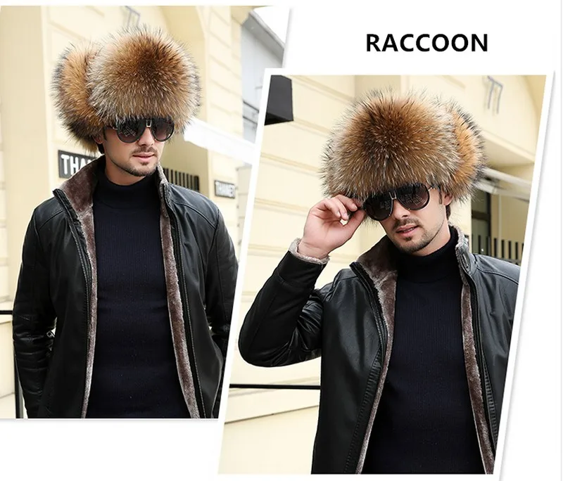 ZDFURS * зимняя мужская шапка-ушанка из 100% натурального Меха чернобурки шапка-ушанка из меха енота охотничья русская Мужская лыжная шапка из натуральной кожи