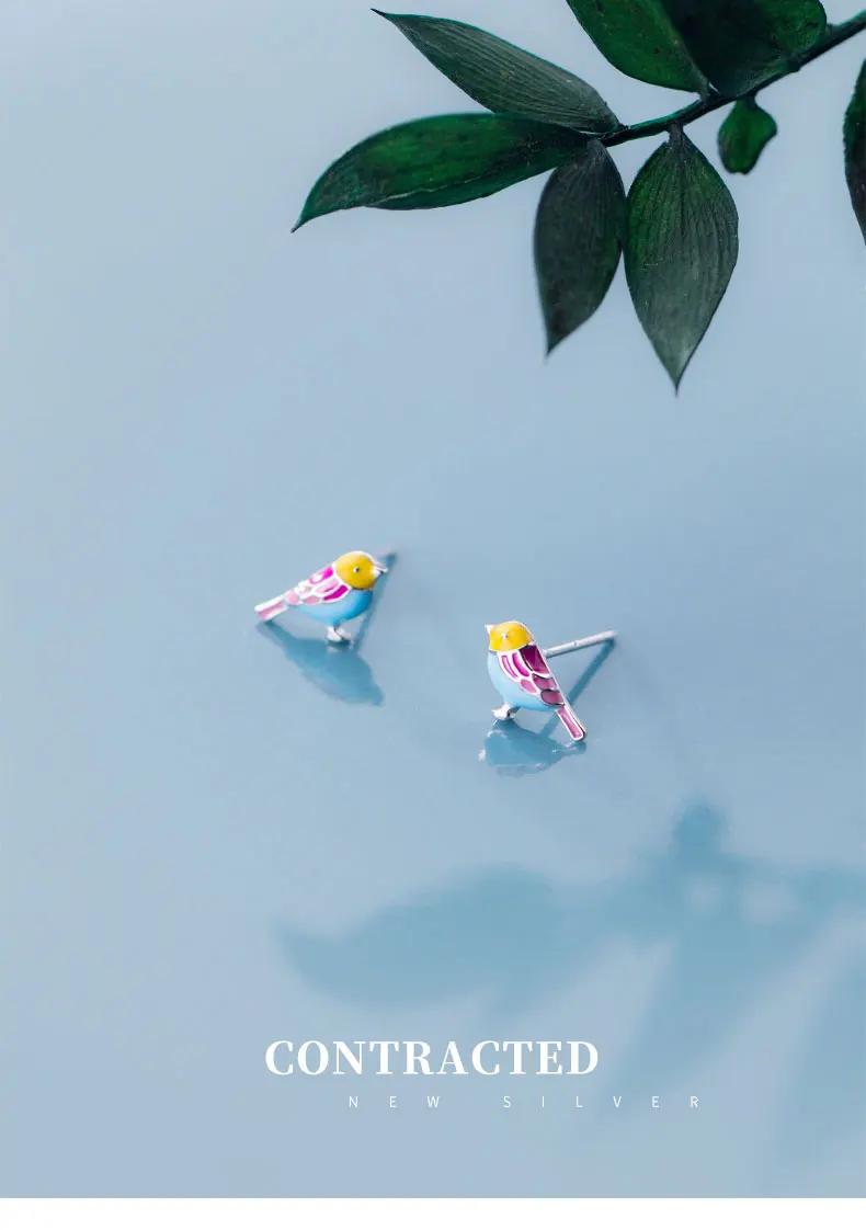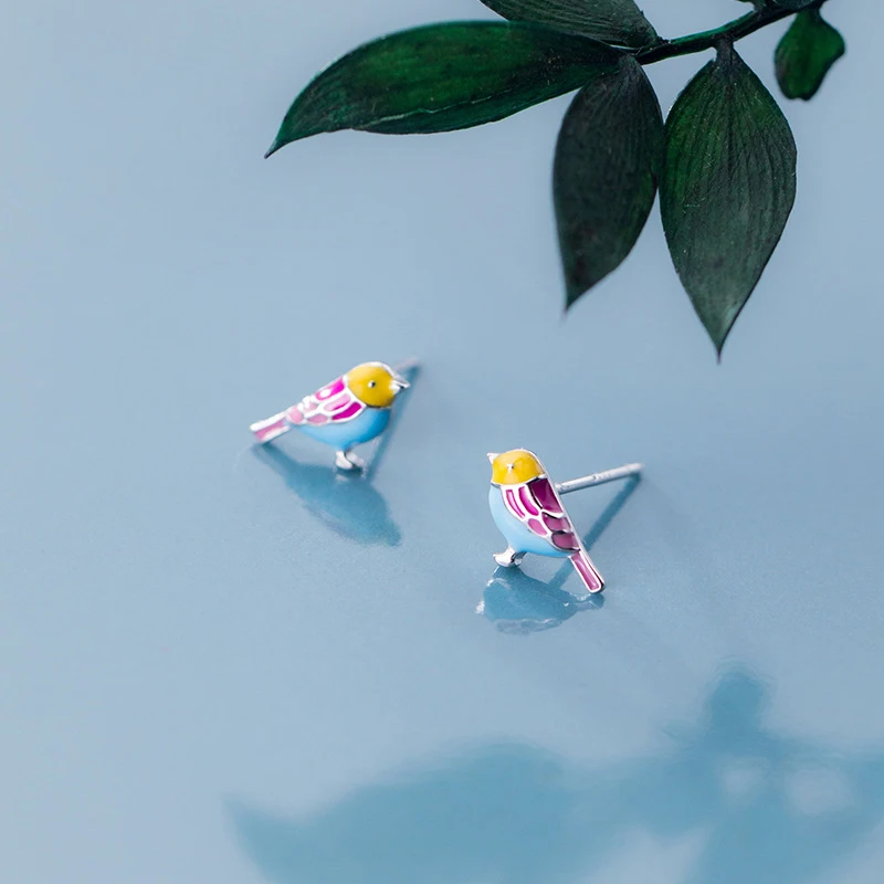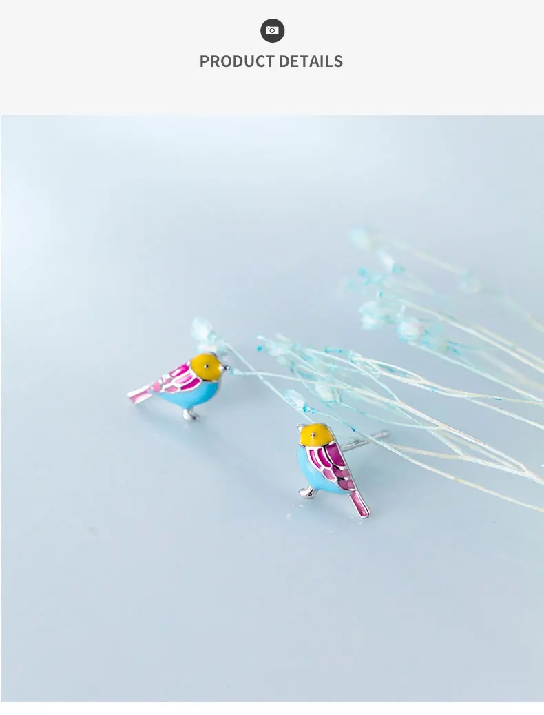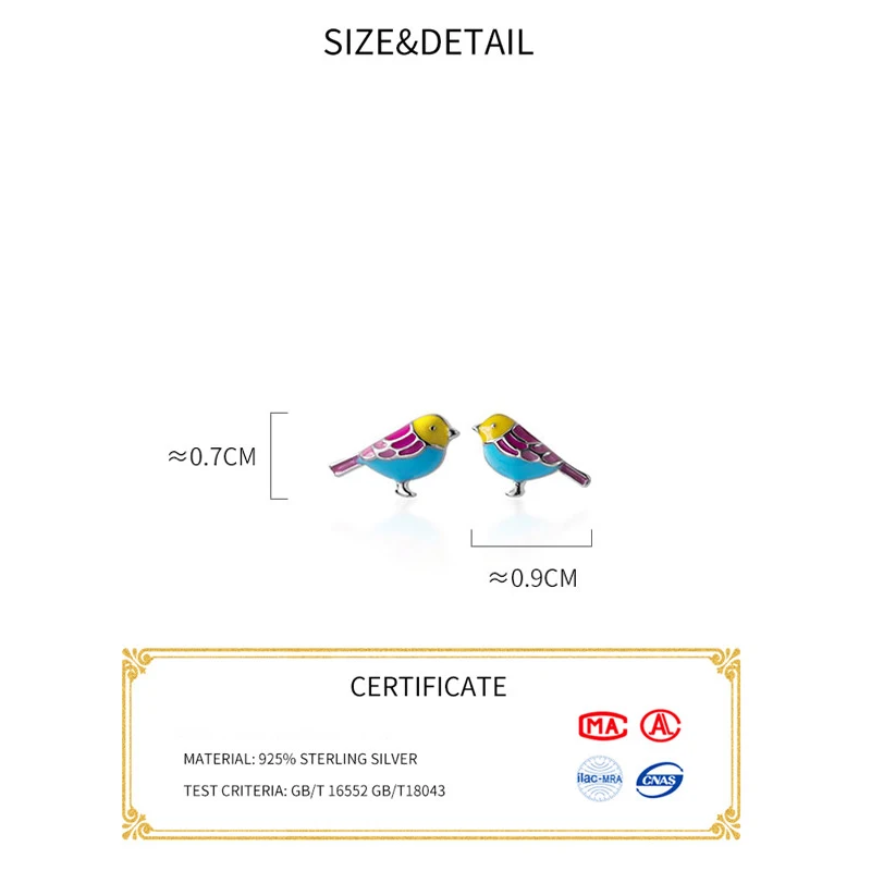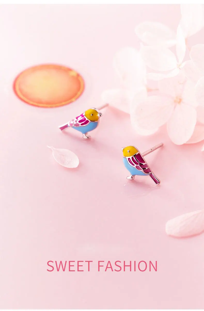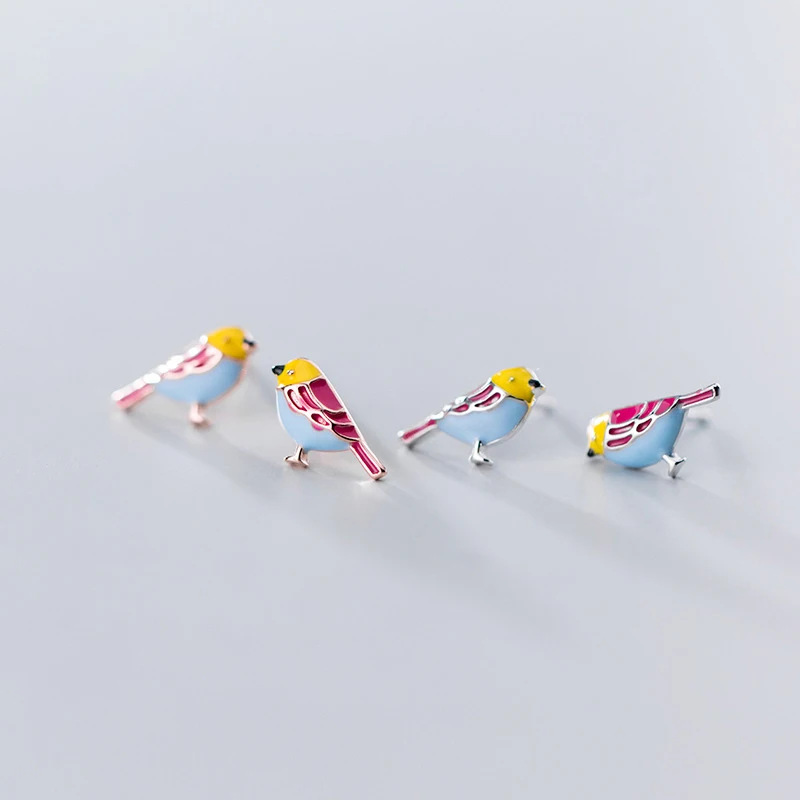 INZATT, Настоящее серебро 925 пробы, цветные серьги-гвоздики с птиц...
