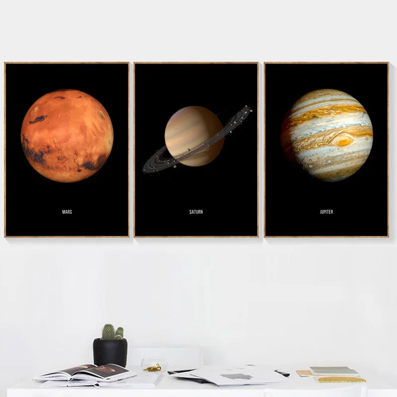 Планет, космос, земля, луна, Венера, солнце, Сатурн, каваны, живопись, постеры и принты, Настенная картина для гостиной, домашний декор