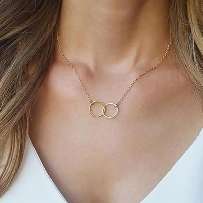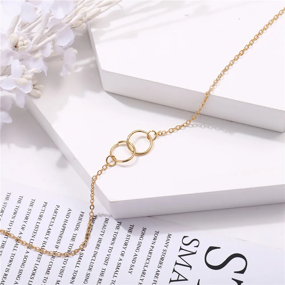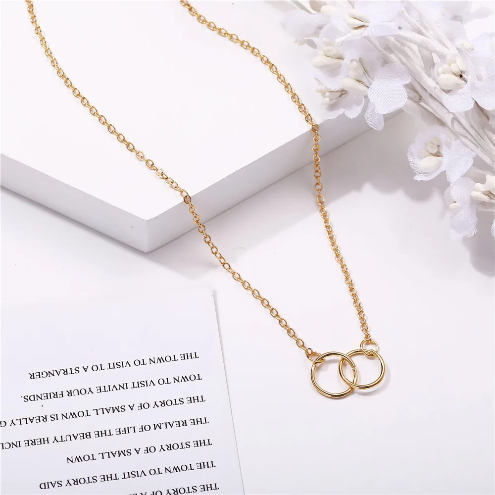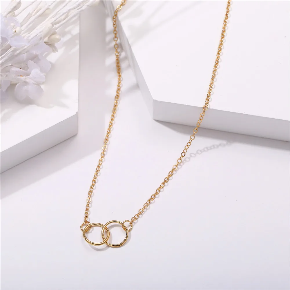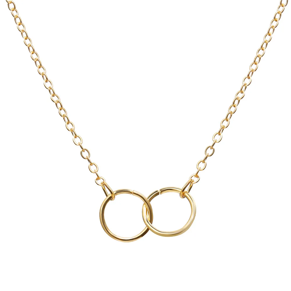Двойное кольцо золотого цвета, Толстый круглый замок ожерелья в круглой цепочке до ключиц, подарочное украшение для девушки