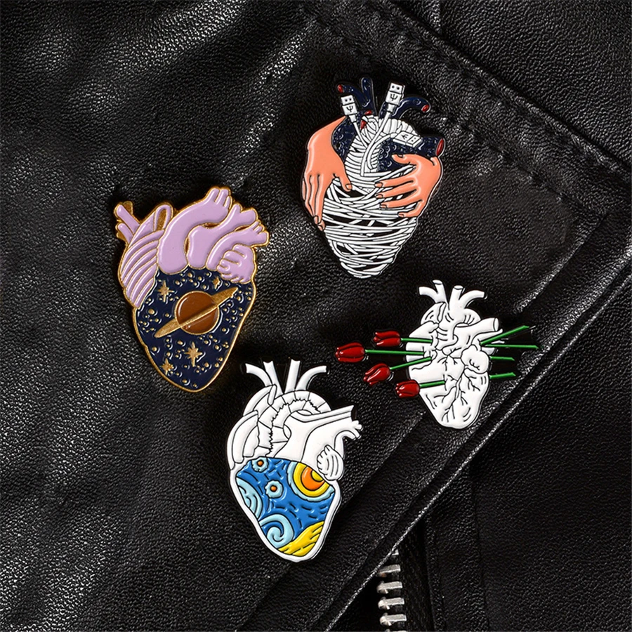 Эмалированные булавки в форме сердца 19style, медицинская анатомиче...