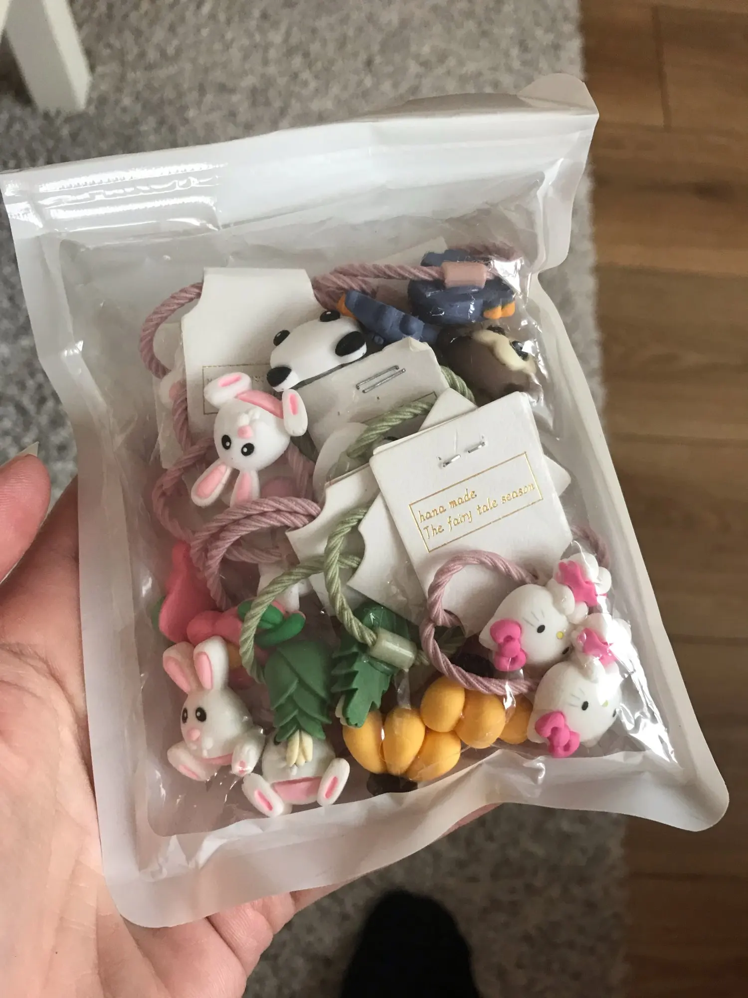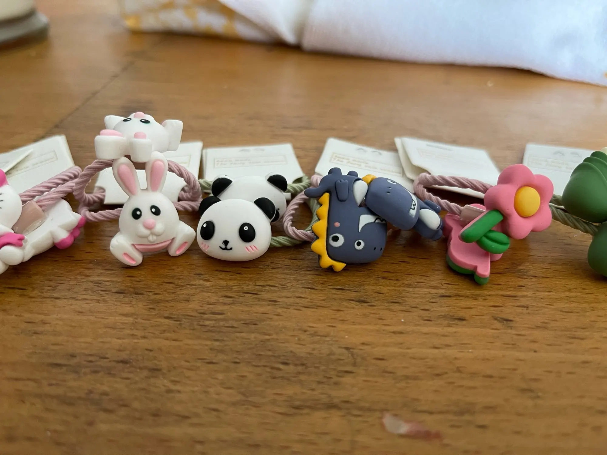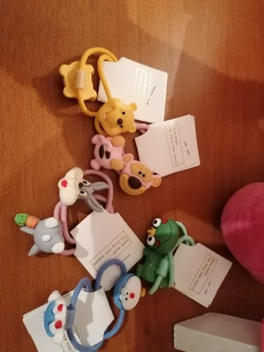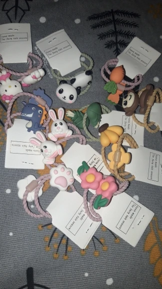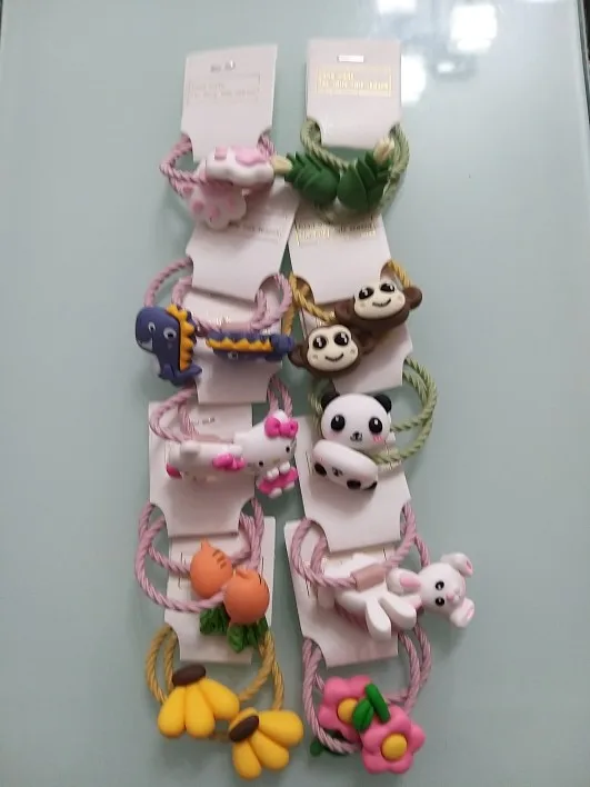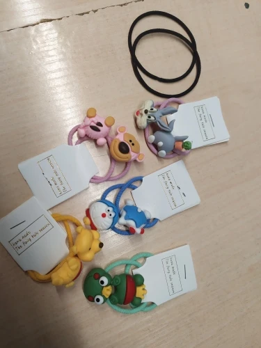 симпатичные резинки. хорошо упакованы. пришли быстро. с продавцом не общалась. пластиковые игрушки на резинке, хорошего качества. приклеены хорошо. резинки тоненькие подойдут для детей с не очень толстой косой... думала будут побольше. го мне нужно на тонкие косички и маленького ребенка. хорошо.