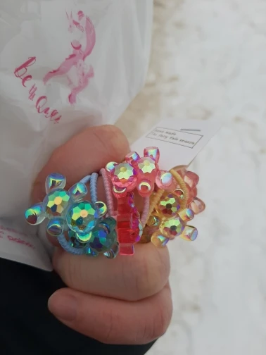 Милые резиночки. Очень легкие. На маленькие хвостики. Блестят красиво. Упакованы были в зип-пакет как на фото продавца + почтовый пакет с пупырками. Шли не очень долго. Трек отслеживался частично. В подарок продавец положил обычную резиночку. Спасибо.