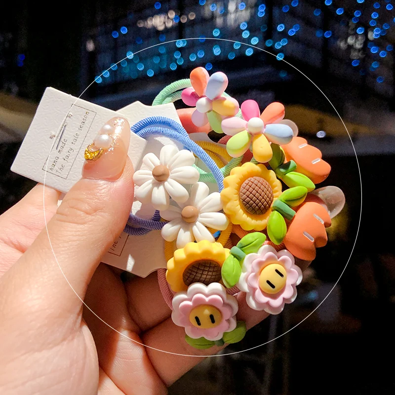 Резинки для волос Детские блестящие с цветами, 1020 шт. в упаковке