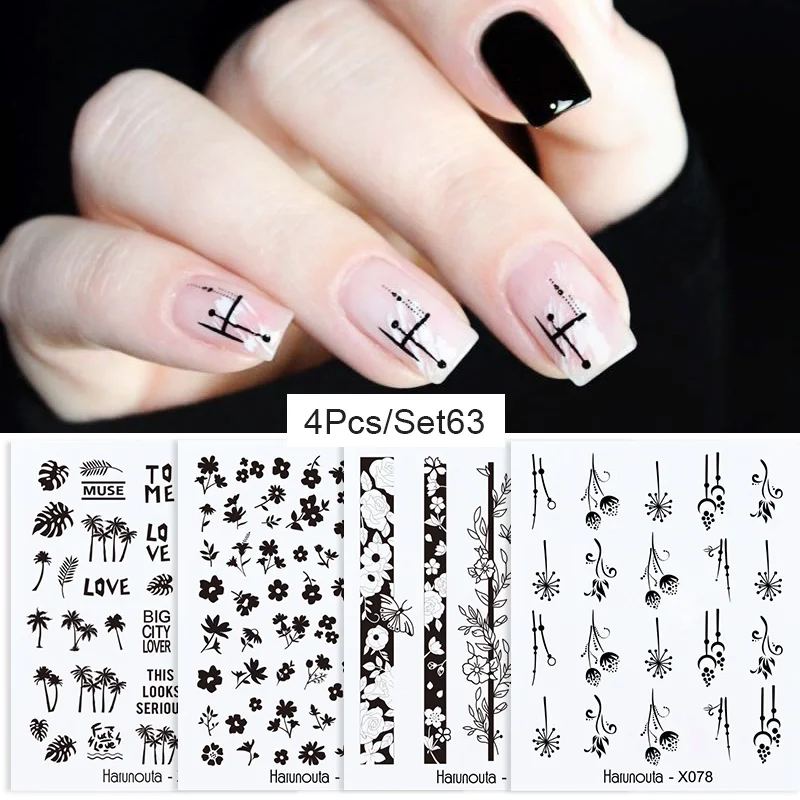 Наклейки для ногтей Harunouta, с геометрическим рисунком бабочки, воды, наклейки для ногтей, переводная картинка алфавита