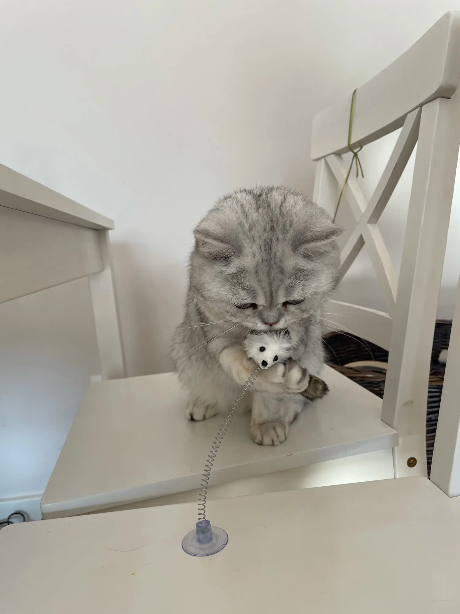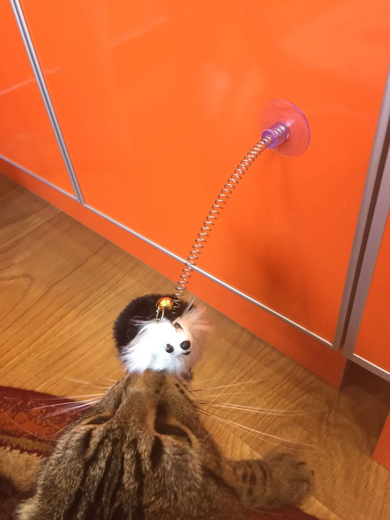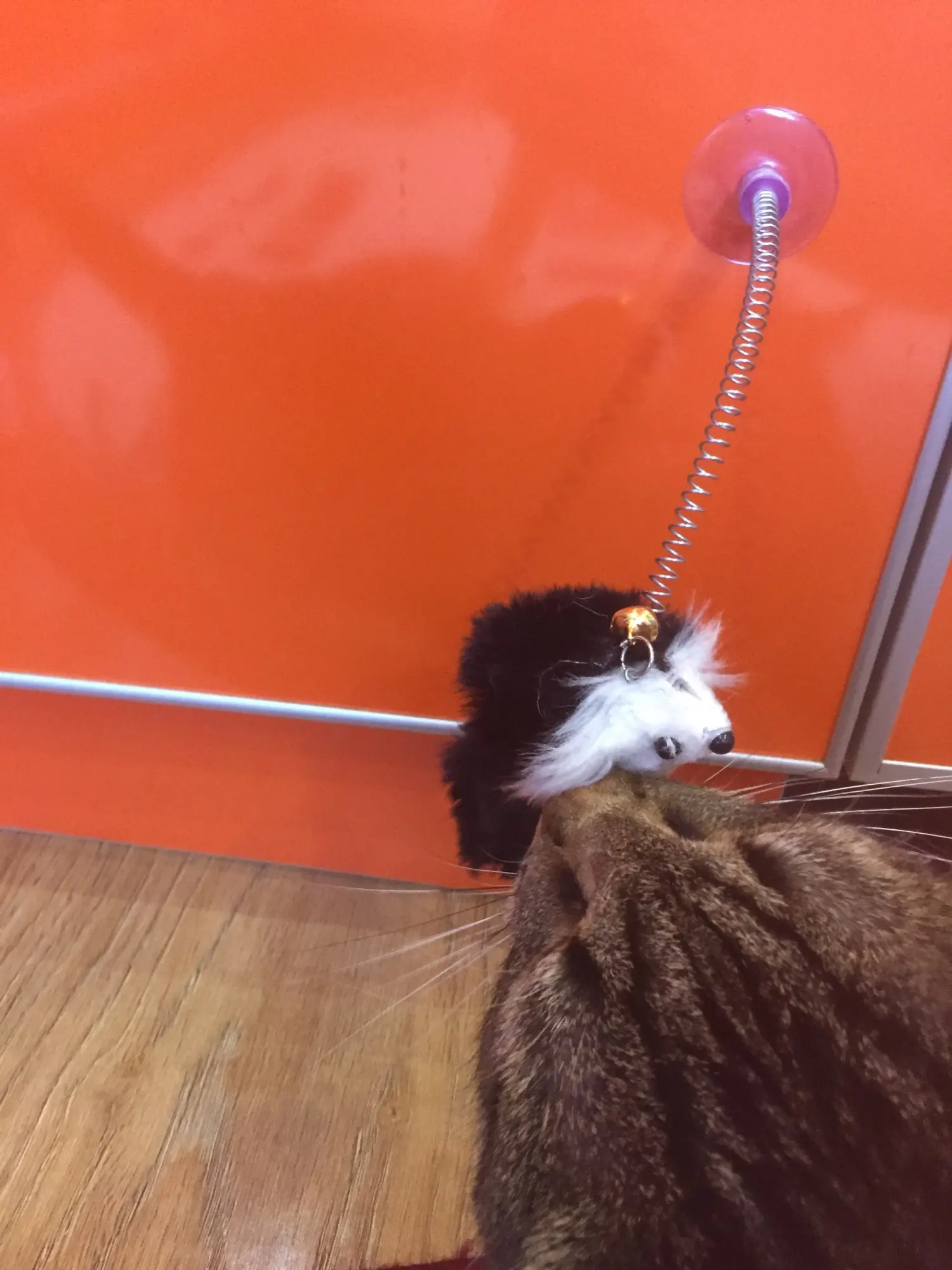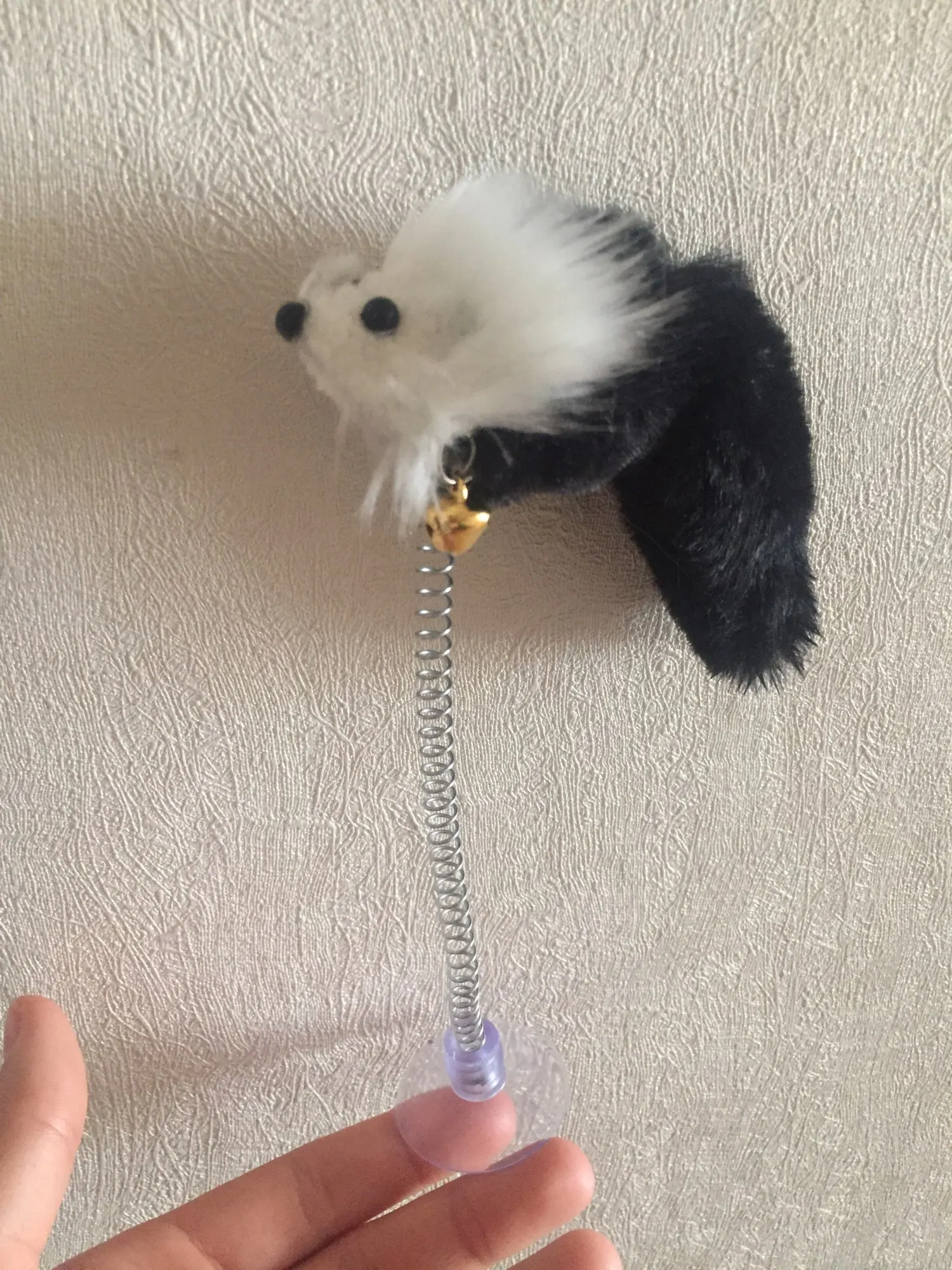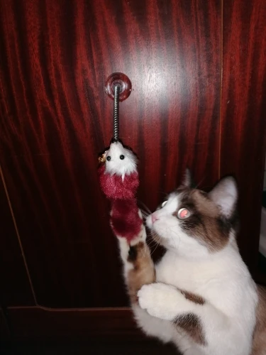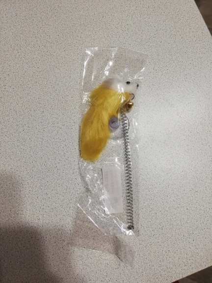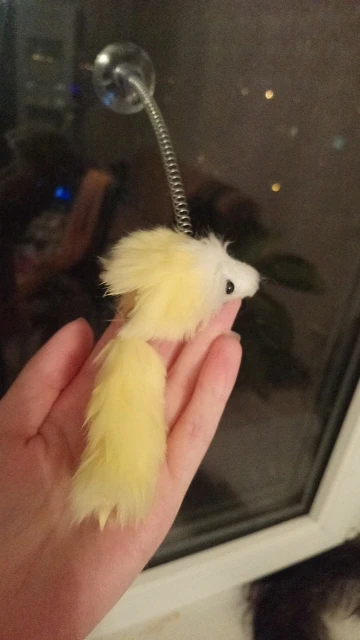 Игрушечку получилаМышка понравилась нашему котику. Сделана качественно. Присоской прикрепляется к холодильнику, только прежде чем прикрепить, присоску нужно смочить водой, тогда она будет крепче держаться. Спасибо Алиэкспресс!!!