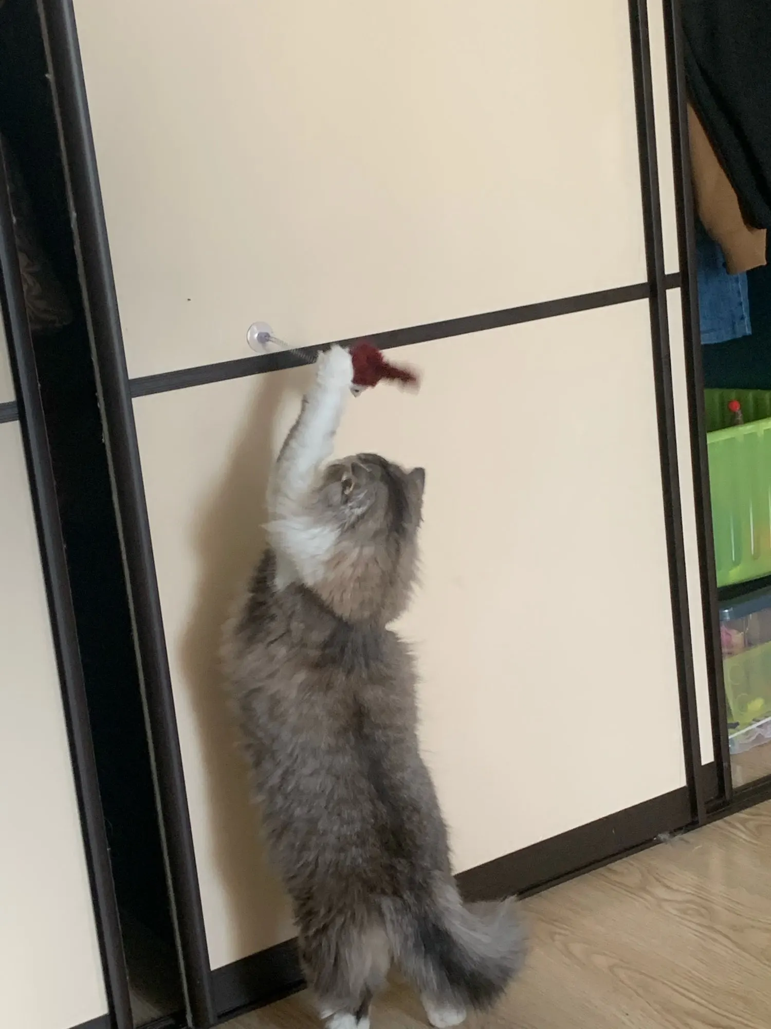 Игрушка качественная, кот оценил. Но присоска не держится по законам физики.. пришлось приклеить на шкаф на двусторонний скотч(