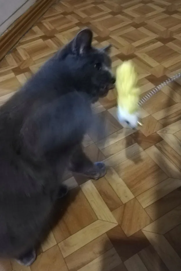 ой классная игрушка, кошечка в восторге. правда часть перьев уже отлетела. колокольчик не громкий, не раздражает, а ее привлекает. вставляю палочку между подушками дивана, или в обувницу- кошечка сама играет