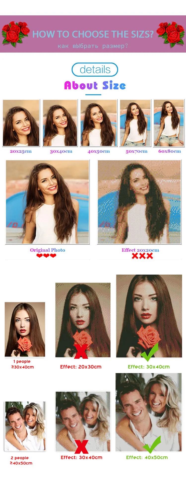 Если вам нужен больше фона, лицо будет размытым, мы порекомендуем вам наиболее подходящий размер.Если вы хотите, чтобы лицо было больше деталей, если вам нужно, чтобы лицо было четким, мы должны обрезать это изображение до нужного размера.Наш размер относится к размеру холста, а не к размеру рисунка.