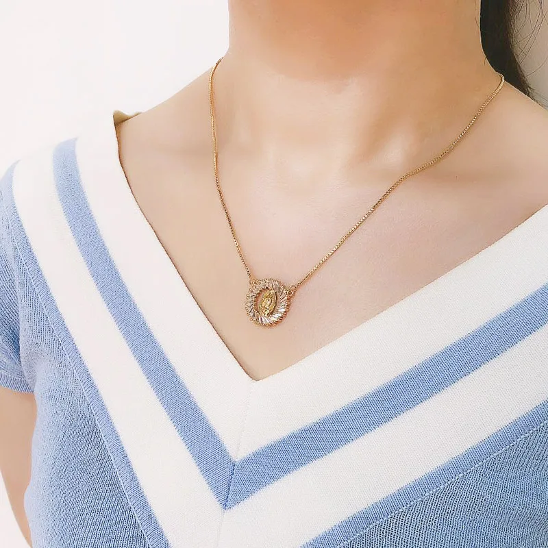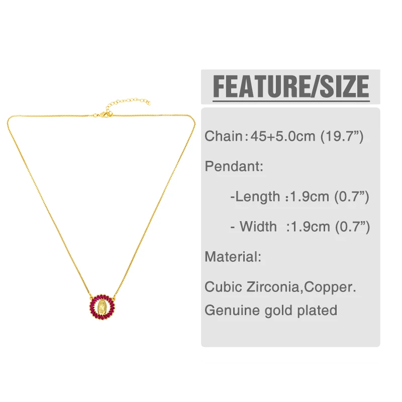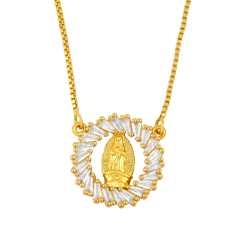 Круглое ожерелье Девы Марии для женщин, медное колье с кристаллами циркония класса ААА, христианские украшения, гуадалуп nker51