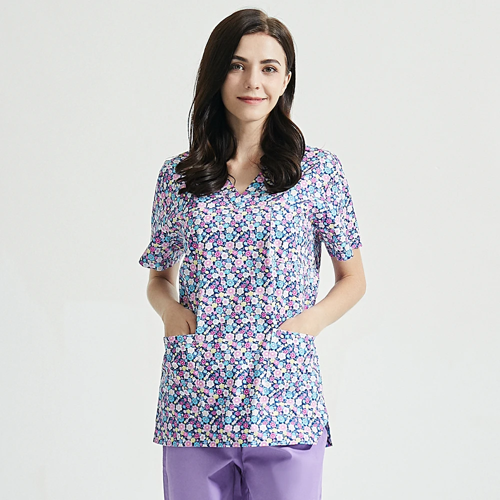 Scrubs tops Cute Cartoon printing Kindergarten teacher workwear pet...