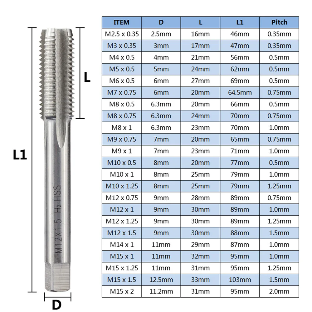 1 шт., правый резьбовой кран, Hss станок, метрический кран, винт, Метчик, инструмент для сверления M2, M2, M3, M4, M5, M6, M7, M8, M10, M12, M14, M15