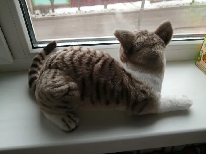 Отличная мягкая игрушка, очень реалистичная! Очень быстро сработала доставка. Мой ребёнок доволен, ему нравится. Помогли оценить отзывы покупателей на сайте. Размер 35 см как у настоящей кошки.