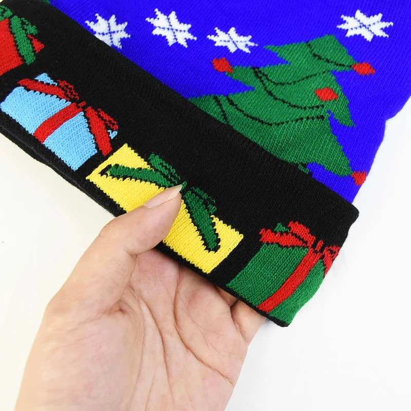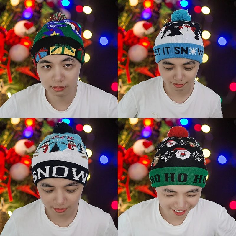 Креативная цветная светодиодная Рождественская шапка с мультяшным рисунком, вязаная шапка для детей, для взрослых, Рождественская вечеринка, Новогоднее украшение
