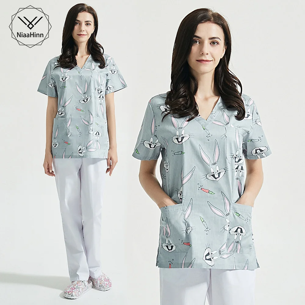 2021 Рабочая Униформа для женщин с мультяшным принтом медсестры бол...
