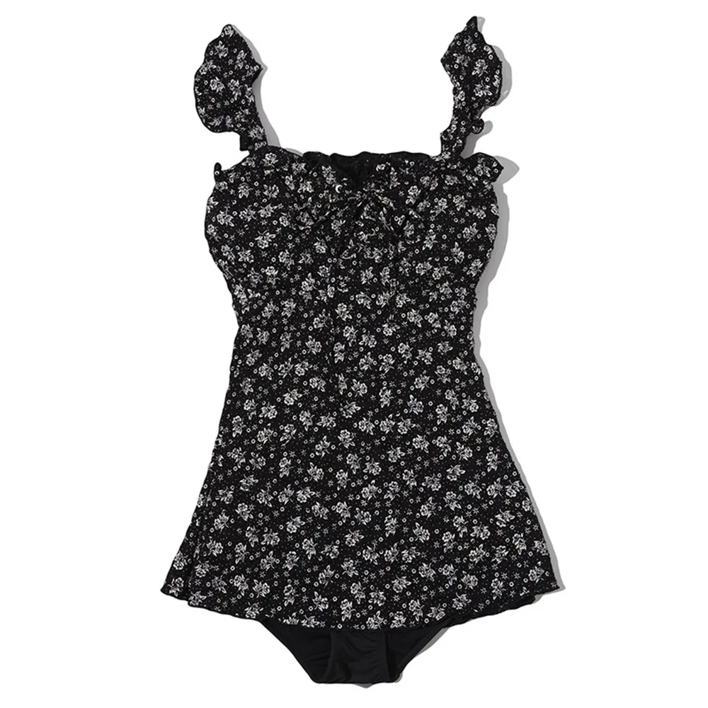 Скромный стиль, цельный купальный костюм для женщин, цветочный прин...