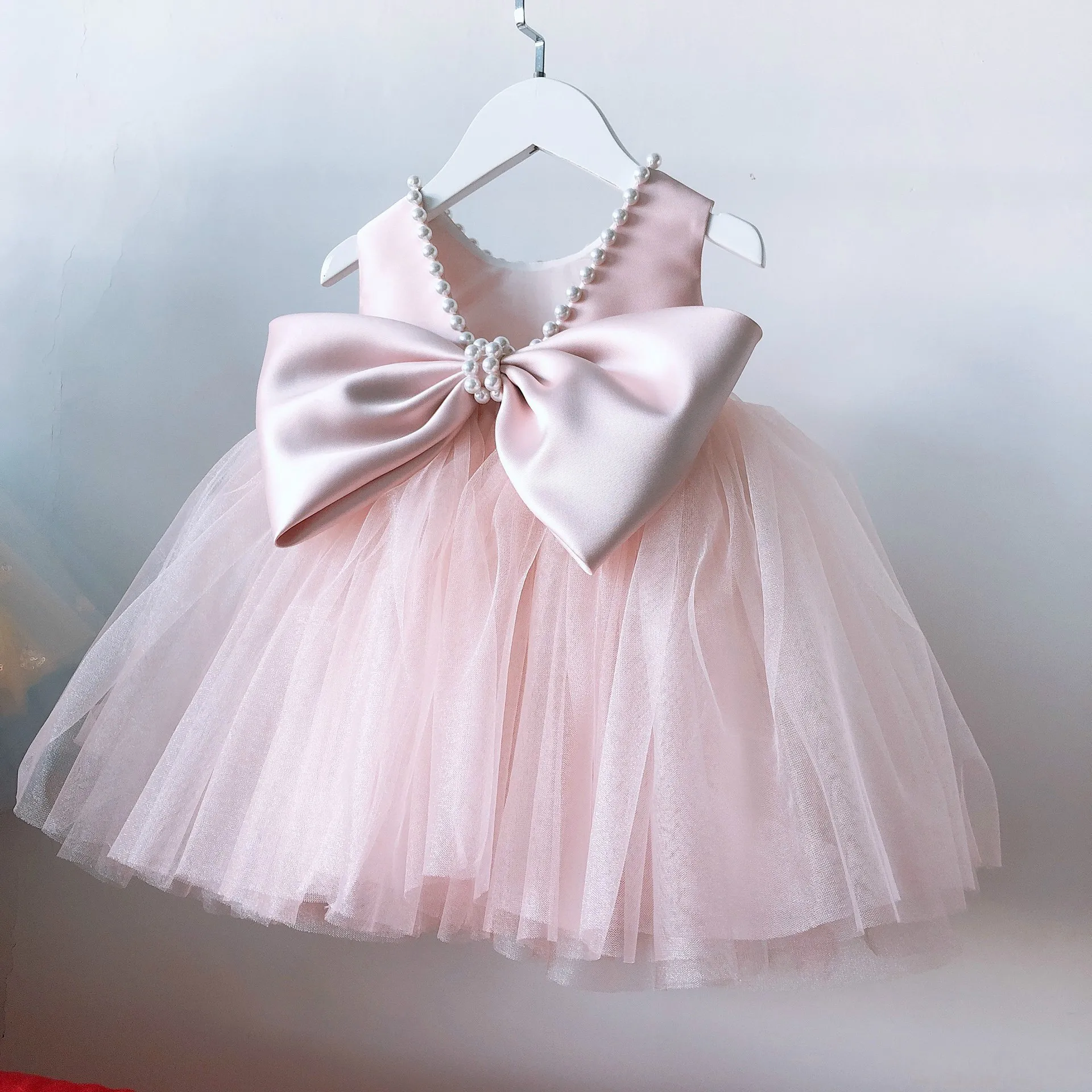 Детское кружевное платье принцессы, розовое платье для крещения, 1 день рождения, свадьба, бисероплетение