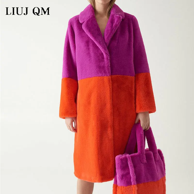 Зимняя теплая парка, женское длинное пальто из искусственной овечьей шерсти, роскошное пальто с лацканами, утепленные куртки, плюшевое пальто из искусственного меха животного