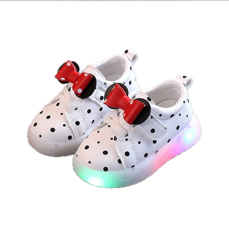 Новинка осени 2021; Детская обувь с подсветкой; Светящаяся обувь с бантом для девочек; Милые кроссовки в горошек для маленьких девочек; Светящаяся обувь для детей; D08151