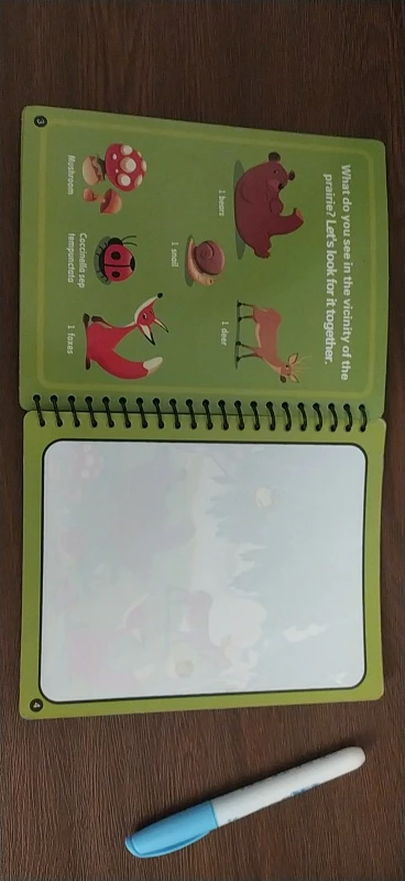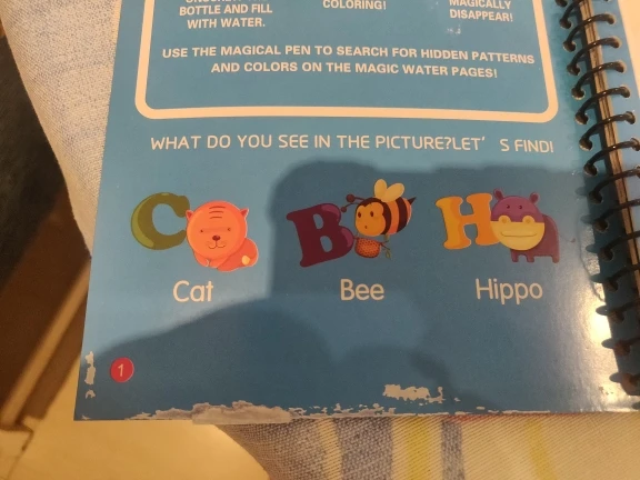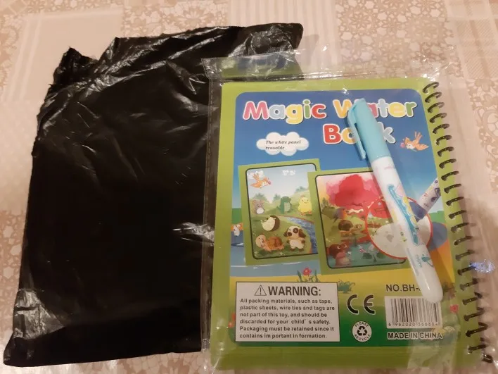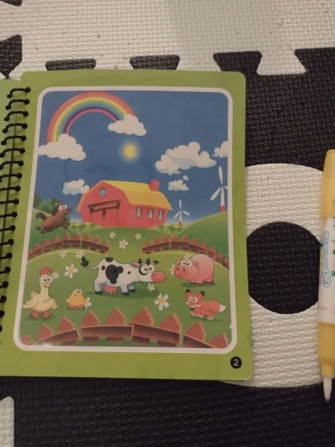 EL LIBRO ES TAL CUAL SE VE EN LA FOTO PERO TENER EN CUENTA QUE ES DE CARTÓN CON LO CUAL DÁNDOLO CON AGUA OS PODÉIS IMAGINAR LO QUE DURA..., OS PONGO FOTOS DEL PRIMER DIA DE USO PARA QUE VEÁIS AUNQUE A MI HIJA LE HA ENCANTADO HA TARDADO MUY POCO EN LLEGAR Y EL VENDEDOR NOS ENVIÓ PEGATINAS Y UNA PIZARRA DE REGALO