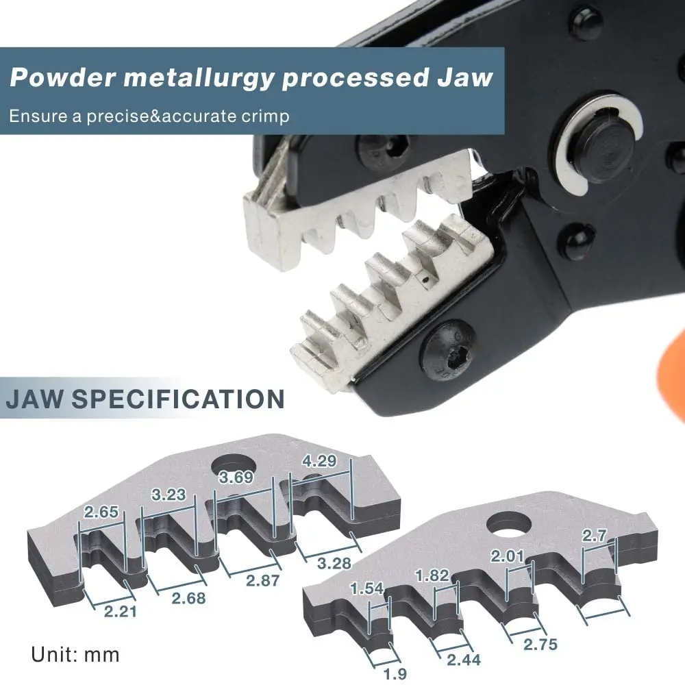 Опрессовки диапазоне: 0,25-1,5 мм ⊃ 2; AWG 24-16Наборы штампов для резки проволочного электрода обещают Высокоточный обжимной результатКомпоненты храпового обжимного инструмента изготовлены из специальной сталиРазработан в соответствии с инженерными факторами человека, он может экономить 50% энергии при обжимеДля 2,54 мм 3,96 мм KF2510 разъем, блок питания ATX, EPS, PCIE и питания SATA шпильки