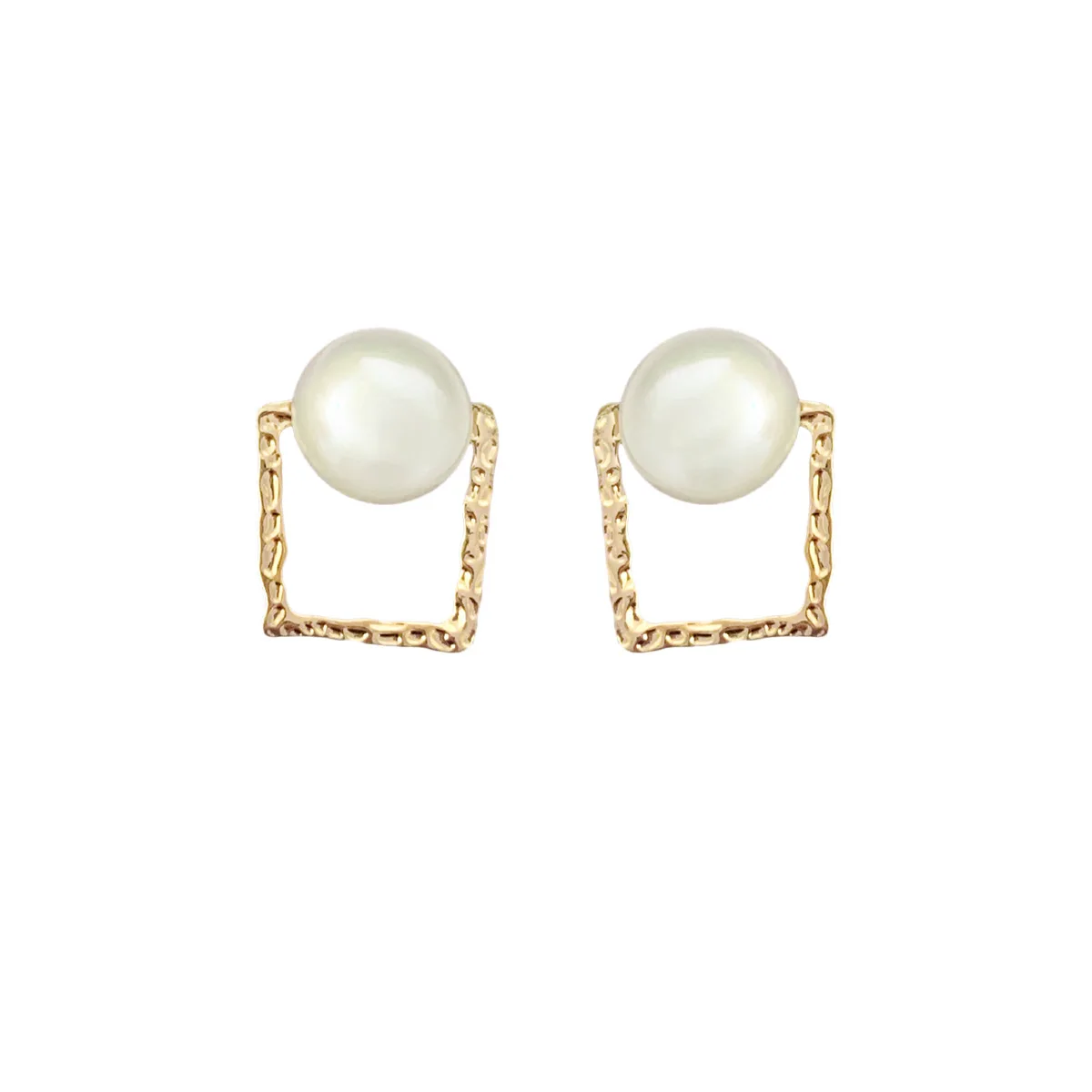 Полые металлические серьги оверсайз с искусственным жемчугом для женщин и девушек золотого цвета из сплава квадратные большие висячие серьги массивные ювелирные изделия