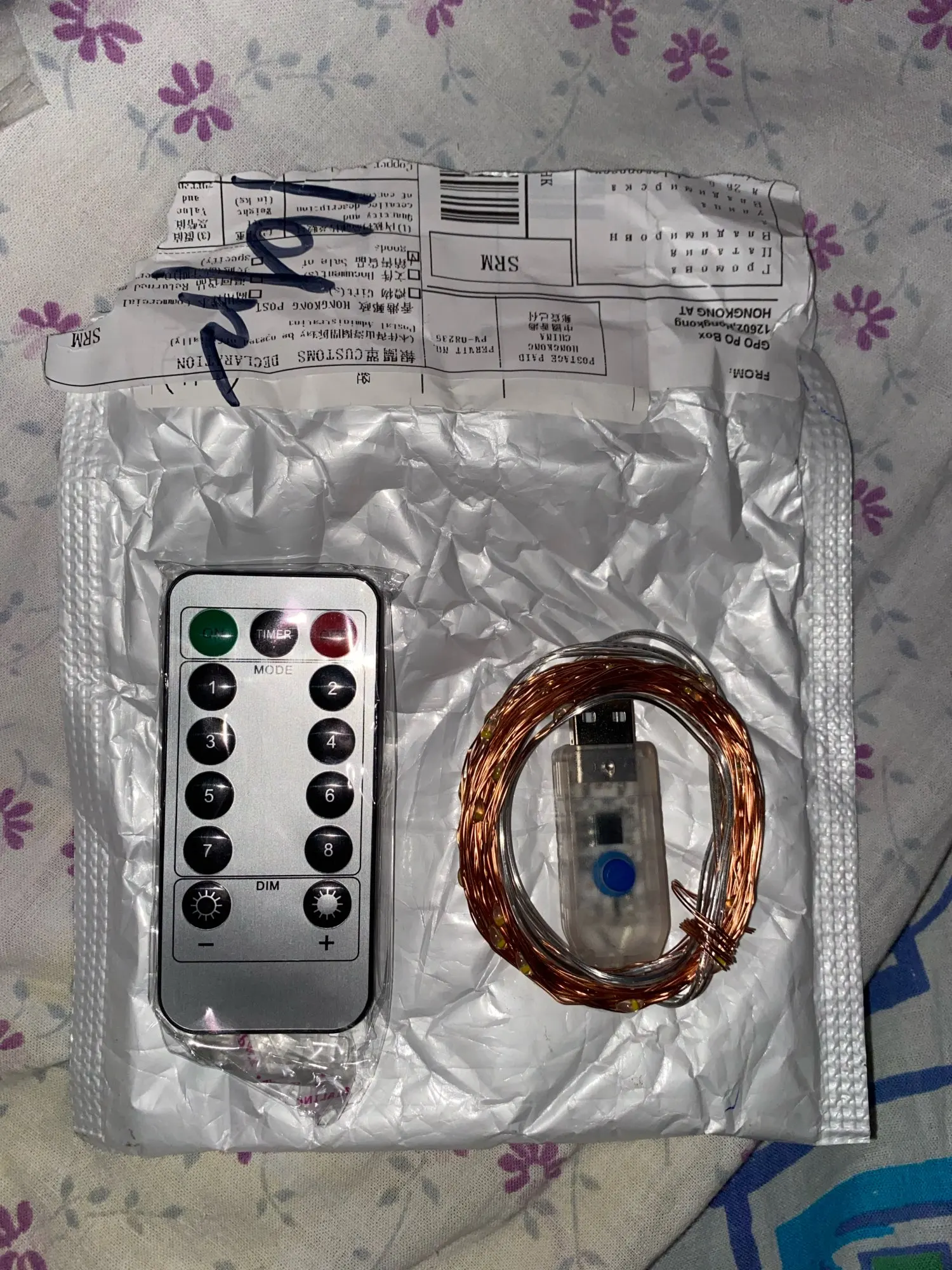 Гирлянда пришла, все работает. Заказ шел 2 месяца. Работает только от USB. есть пульт, с помощью которого можно менять яркость лампочек и режимы мерцания