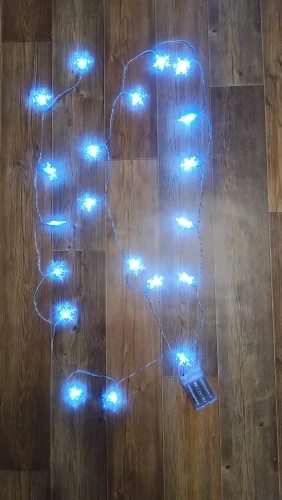 Заказывала самую короткую, 10 лампочек - без нареканий) все пришло целым, работает от 2х пальчиковых батареек. Маленькие симпатичные снежинки) Пришло оооочень быстро, меньше месяца до Калининграда.