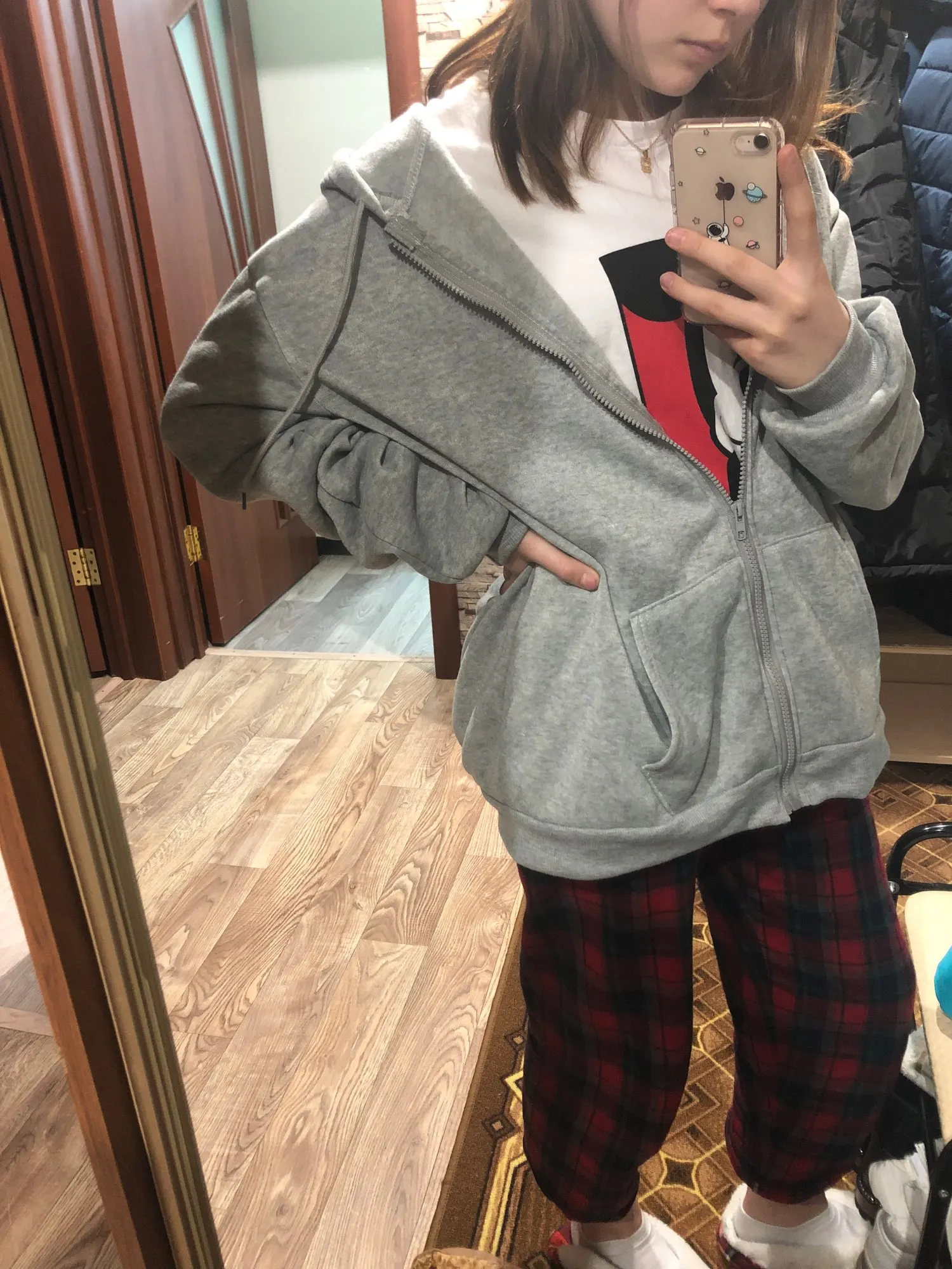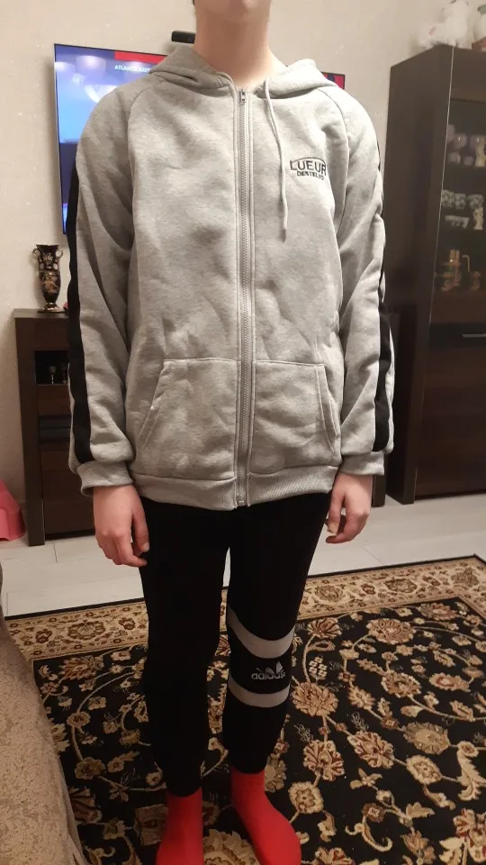 В общем, когда товар пришёл, вытащив, была разочарована, очень тонкая ткань, на вечернее лето пойдёт, там уже была дырка на капюшоне, причём такая которую если зашивать будет видно, сидит конечно не так как хотелось бы Но, я открыла спор и мне вернули половину суммы, за пару дней, так что это радует Как по мне не стоит эта толстовка своих денег, за такую лёгкую ткань дороговато Не понимаю почему в комментах одна девушка написала что ткань тёплая, вообще ни разу Ну а так спасибо продавцу и Aliexpress, за быстрый возврат средств на карту и быстрому решению проблемы.